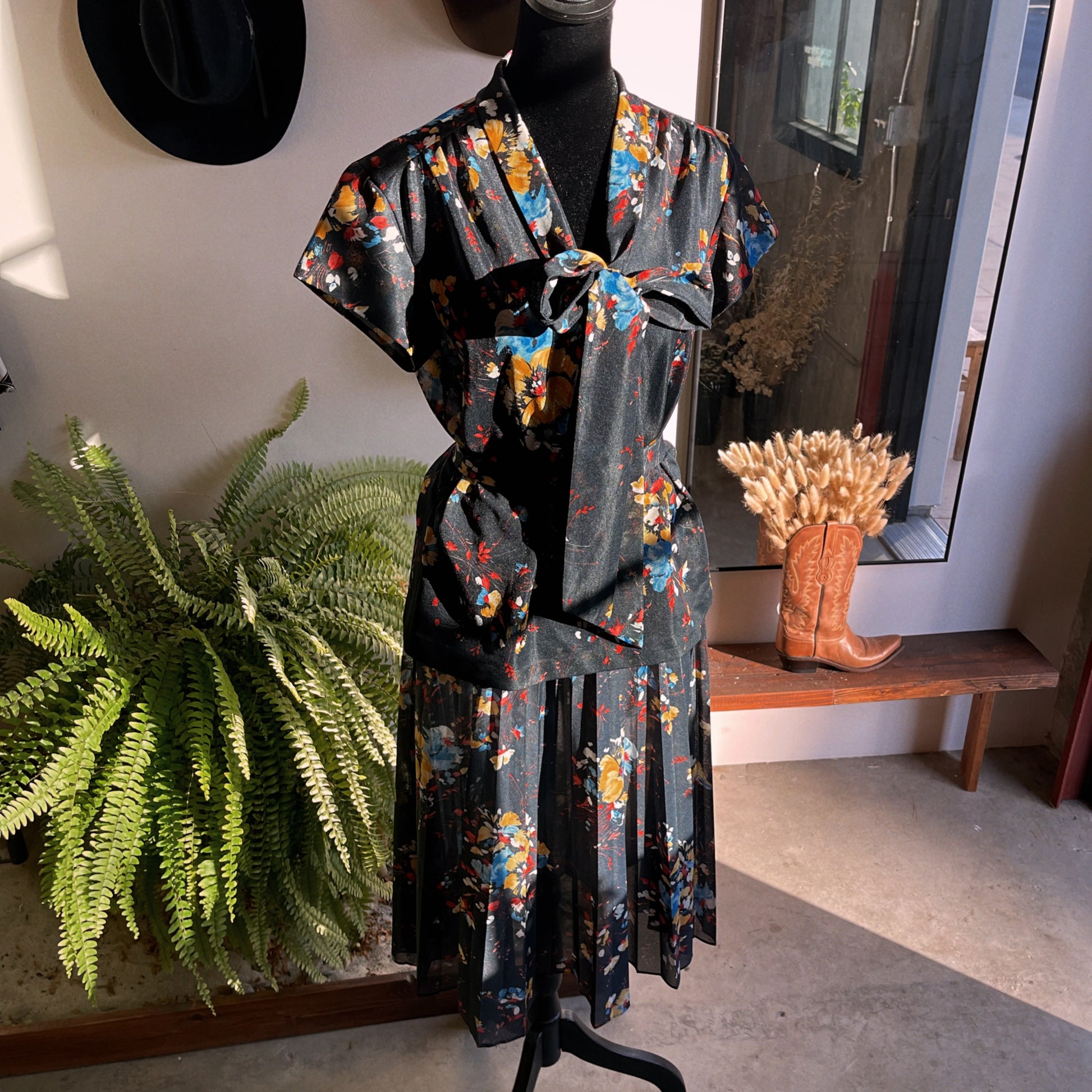 1970s Black Floral 3 Pc. Skirt Set Unionmade