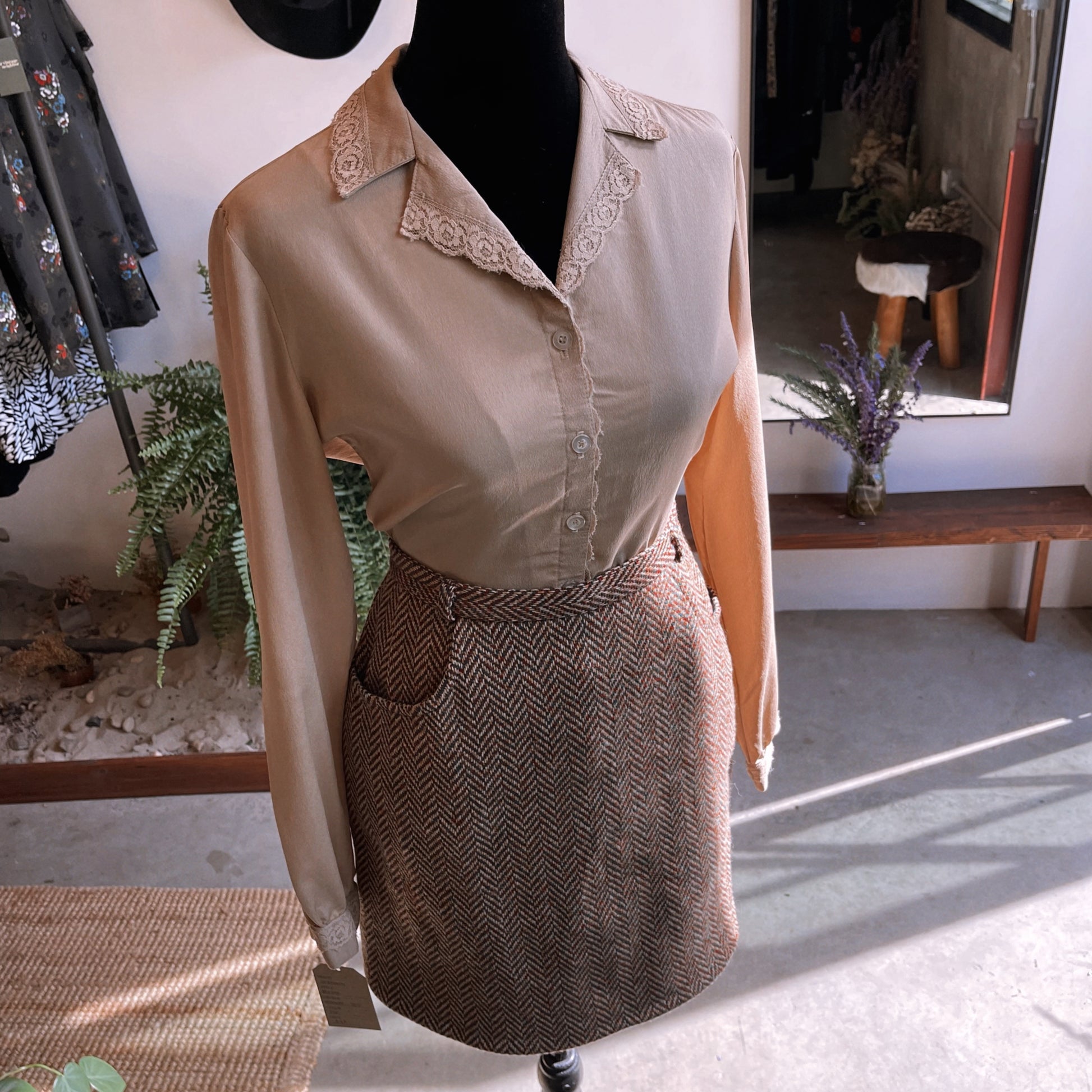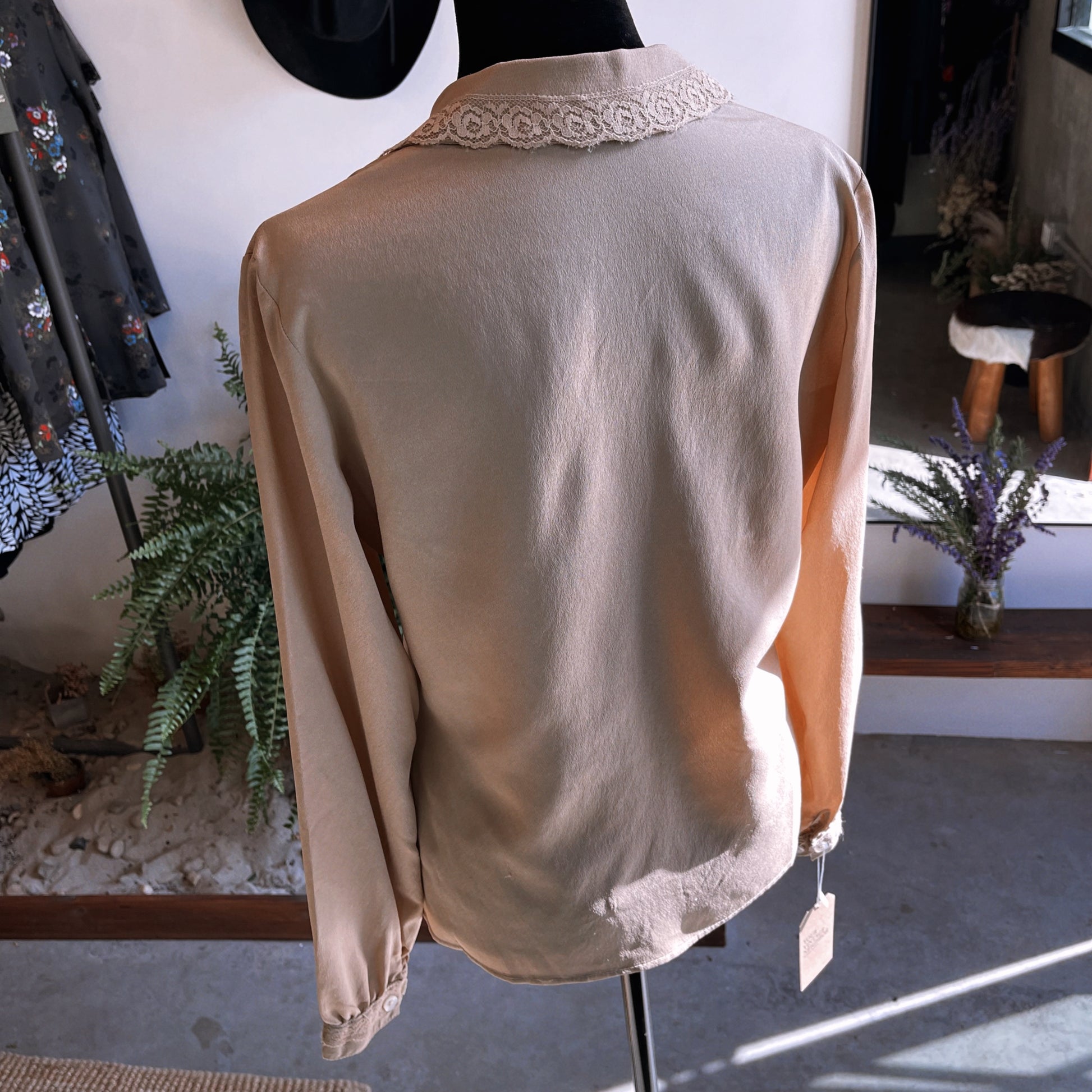 1970s Vintage Tan with Lace Hem Blouse