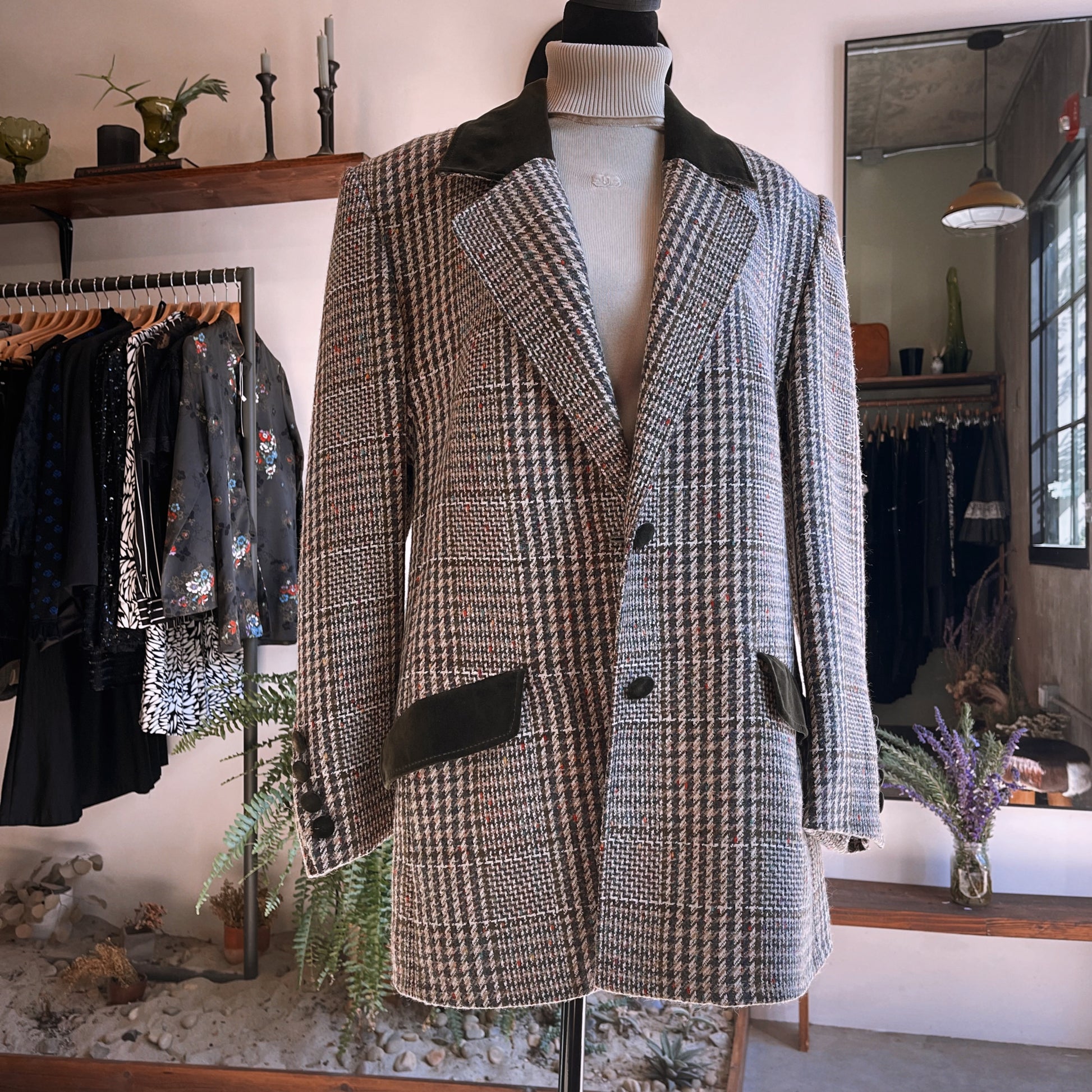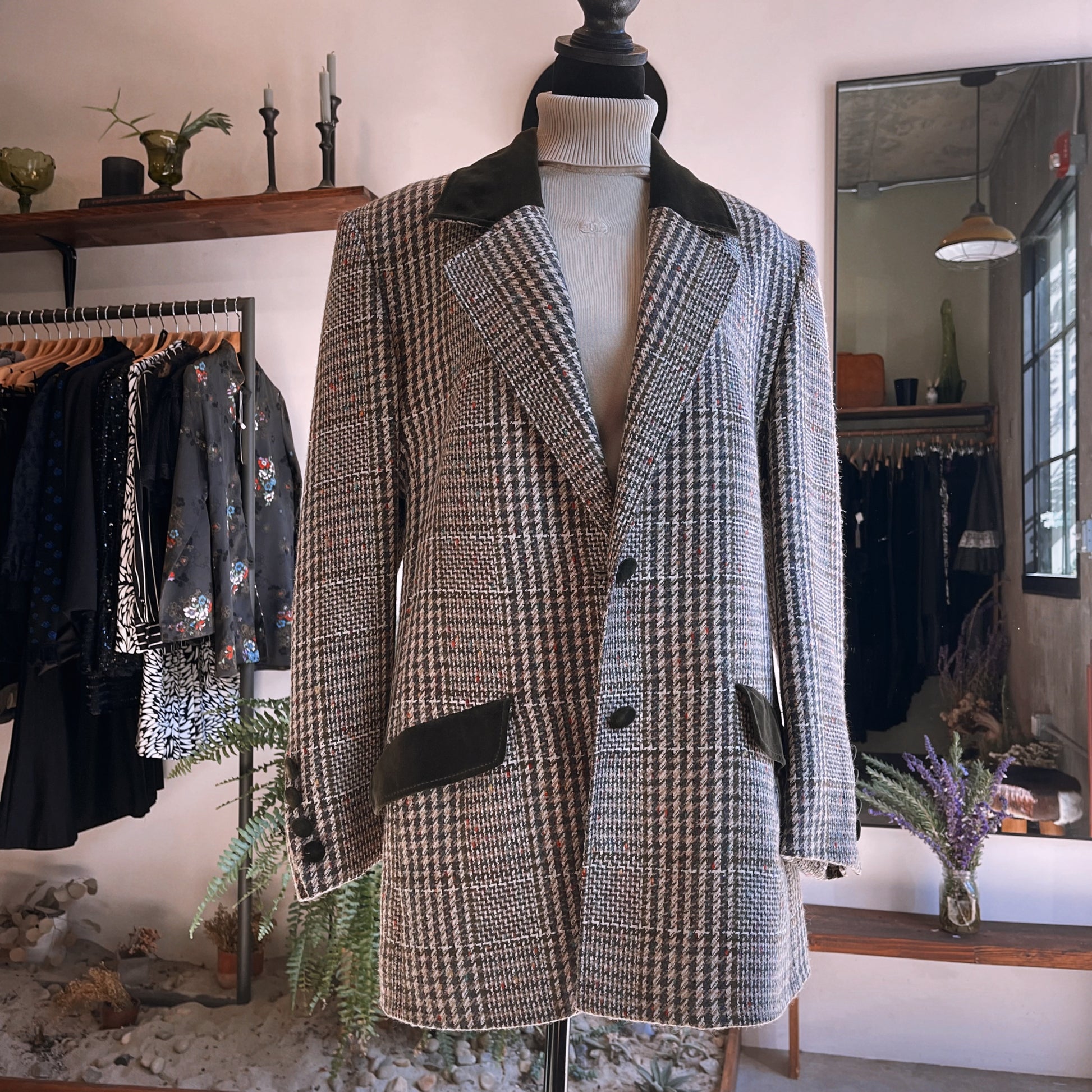 1980s Givenchy En Plus Tweed Velvet Blazer Coat