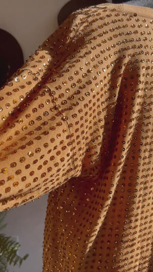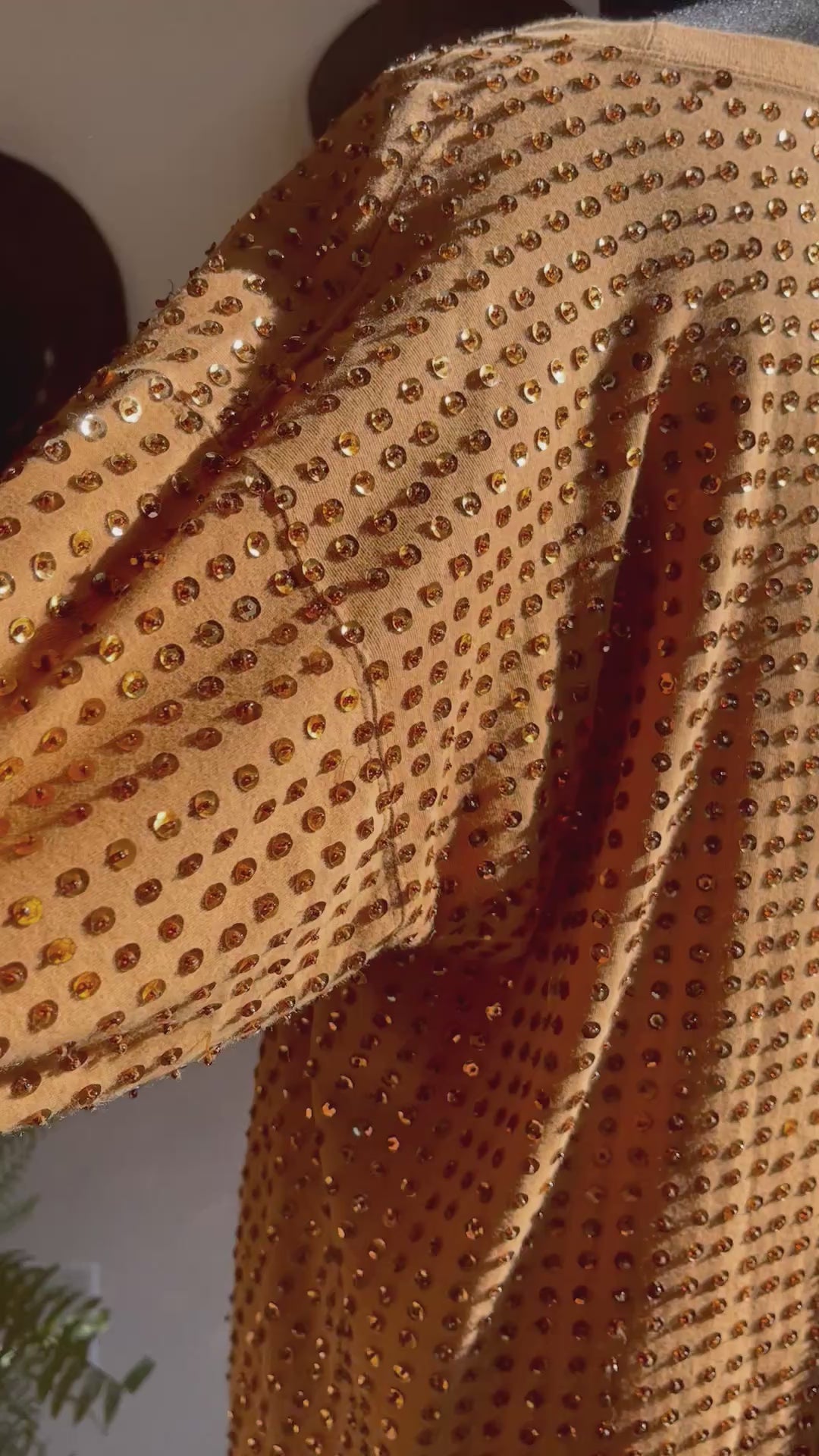Vintage Bis Bis sequin oversized California cotton tee in gold. Labeled a size medium. Few sequin beads missing, price reflects.