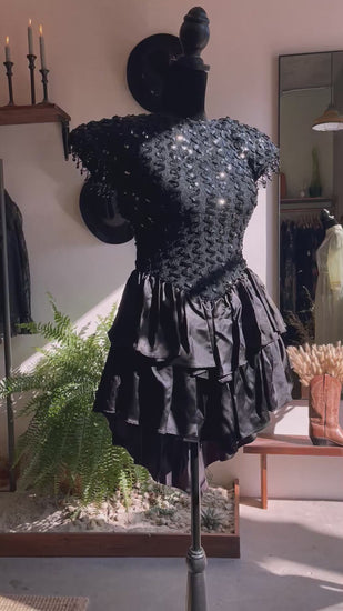1980s Vintage Sequin Tiered Mini Dress