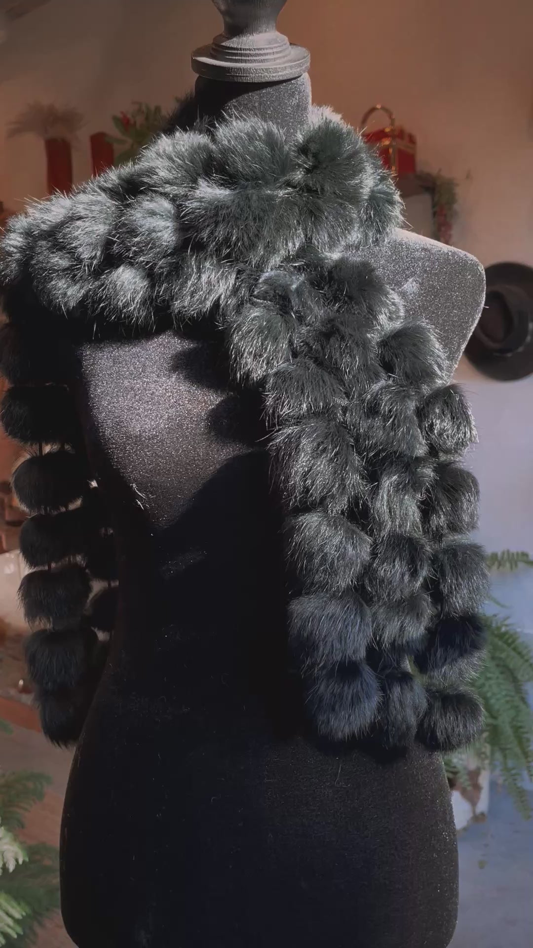 Vintage Pom Fur Scarf Black