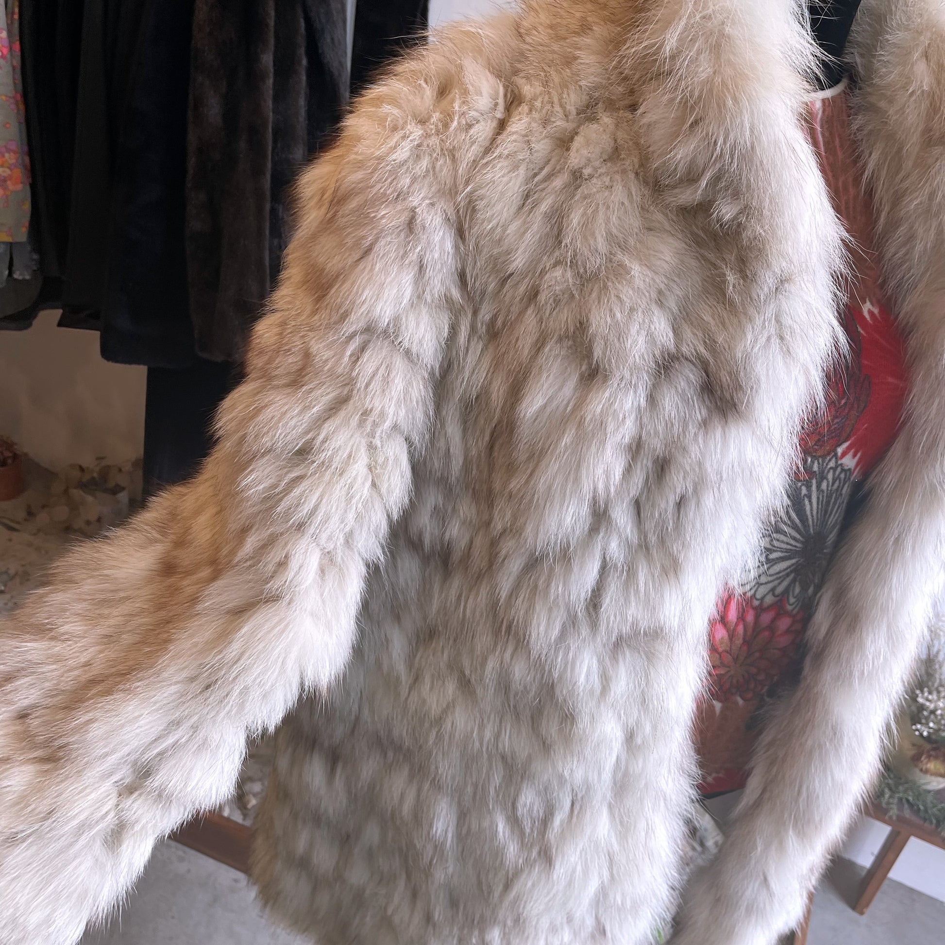 Vintage rabbit fur jacket in white silver with long sleeves and interior hidden pull closure. Minor wear with no staining or holes. Profesional clean only. One size fits most.